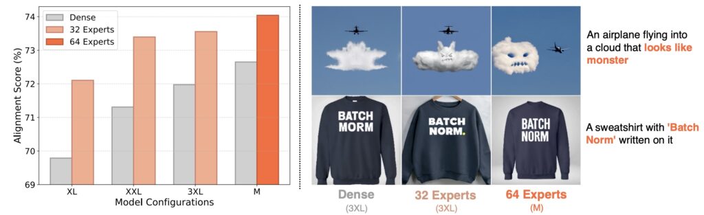 Например, EC-DIT от Apple (Sun et al., январь 2025) масштабировался до 97 миллиардов параметров, используя Mixture-of-Experts с новыми алгоритмами маршрутизации. Идея в том, что разные части изображения требуют разного количества вычислений — простой фон обрабатывается “дешёвыми” экспертами, а сложные детали — “тяжёлыми”.