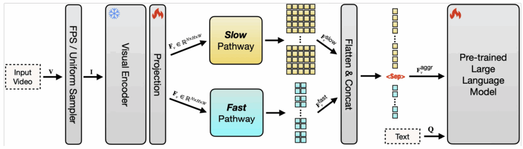В работе Hour-LLaVA/VideoMarathon (Lin et al., июнь 2025) представлен датасет понимания видео на 9,700 часов с 3.3M парами вопрос-ответ. А разработанная в Apple модель SlowFast-LLaVA-1.5 (Xu et al., март 2025) улучшает результаты на LongVideoBench через двухпоточную архитектуру: медленный поток для пространственных деталей и быстрый поток для временной динамики.