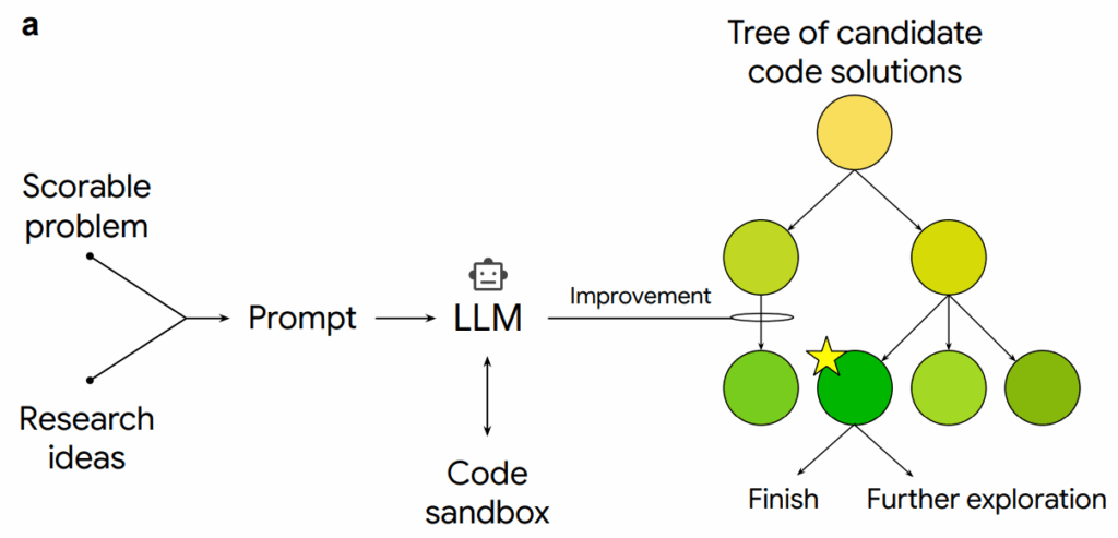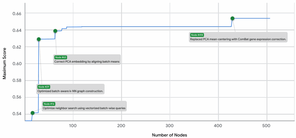 По сути, это превращает задачу “придумай новый научный метод” в задачу “найди путь в дереве кодовых мутаций, который максимизирует score”. И оказывается, что последняя может оказаться для современных AI-систем существенно проще.