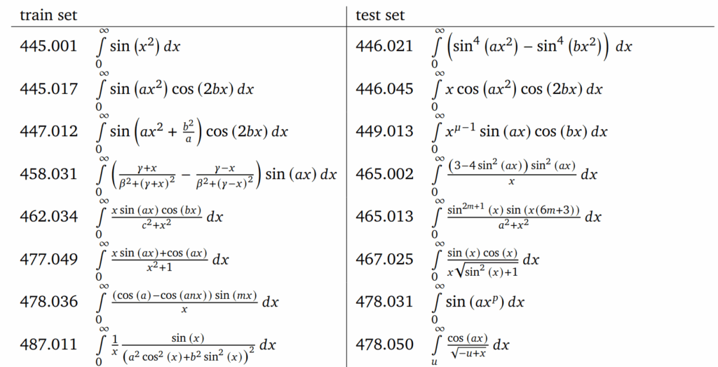 Здесь Aygün et al. (2025) сами создали датасет из 38 сложных интегралов. Под “сложными” подразумеваются интегралы, которые не решает стандартный scipy.integrate.quad: или расходится когда не надо, или просто возвращает неправильный ответ. На половине из них система оценивала MCTS, а другая половина была тестовой. Вот вам немного Демидович-вайба: