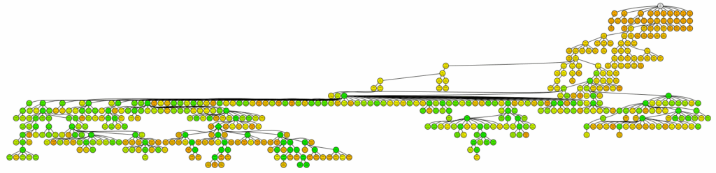 Многорукие бандиты из MCTS здесь делают поиск более направленным; обратите внимание, что дерево вовсе не такое уж широкое, и в нём есть конкретные узлы с “хорошими идеями”, которые начинают постоянно использоваться и перетягивать на себя поиск. Эти “хорошие идеи” скорее всего соответствуют скачкам в целевой функции, и причины этих скачков вполне можно постичь человеческим разумом, это же просто изменения в коде экспериментов: