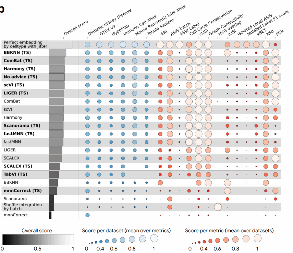 Эта задача называется batch integration: как объединить разные single-cell датасеты, сохранив биологический сигнал. Задача очень важная и для Human Cell Atlas, который картирует все типы клеток в организме, и для онкологических исследований, и для, например, анализа того, как COVID-19 повлиял на иммунитет. Про неё есть датасеты, бенчмарки и лидерборды (Шишков, прости!), которые проверяют много разработанных исследователями метрик качества batch integration.