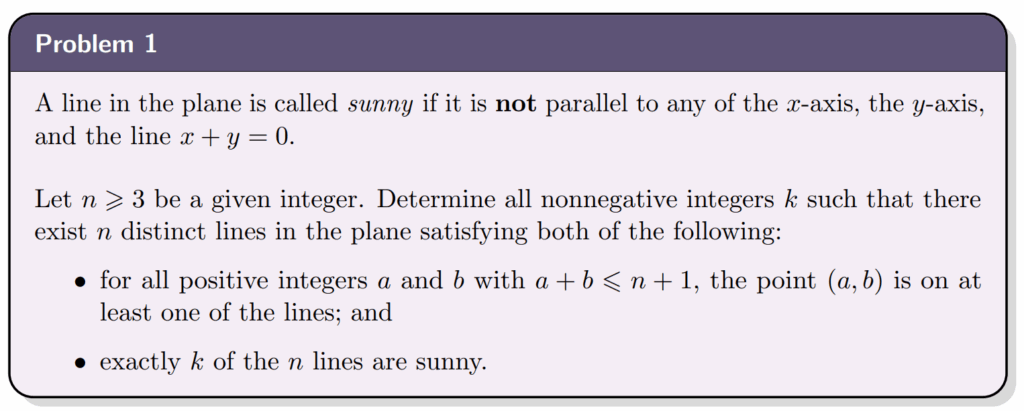 bijection T: (x,y+1) ↔ (x,y), between P_n \ H_n and P_{n-1}. Exactly: if (a,b) in P_{n-1}, (a,b+1) in P_n, y>=2, sum a+b+1<=n+1. Conversely. Take remaining n-1 lines ℓ in L{H_n}, translate downward by vector (0,-1). family L’ size n-1. For any p in P_{n-1}, p+(0,1) is in P_n \ H_n, covered by some ℓ; shift ℓ down, p covered by ℓ’. So L’ covers P_{n-1}. Translation preserves direction -> sunny status same.3) E=V_n (x=1), same via shift (-1,0). Exactly same.