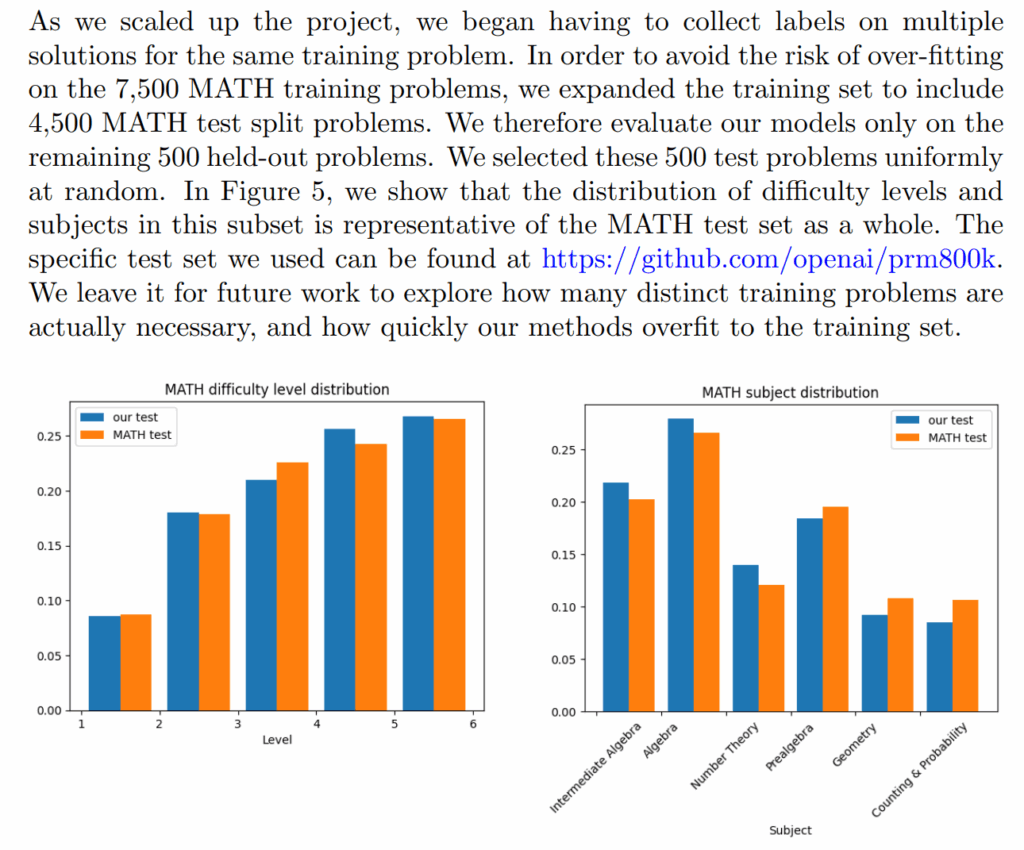 Что же сделала OpenAI? Они взяли 4500 задач из оригинального тестового набора MATH и… включили их в свой тренировочный датасет PRM800K. Формально всё честно: Lightman et al. открыто об этом написали в статье и не утверждали, что проводят честное сравнение с моделями, не видевшими этот тестовый набор; работа вообще была о process reward models.