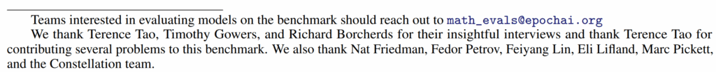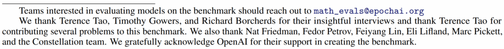 В том, насколько это мутная история, легко убедиться по самым что ни на есть первоисточникам: просто посмотрите на саму статью Glazer et al. (2024) о датасете FrontierMATH. На arXiv, который помнит всё, есть пять версий этой статьи (это нормально, статьи часто дорабатывают). В версиях до четвёртой включительно acknowledgements выглядят вот так: