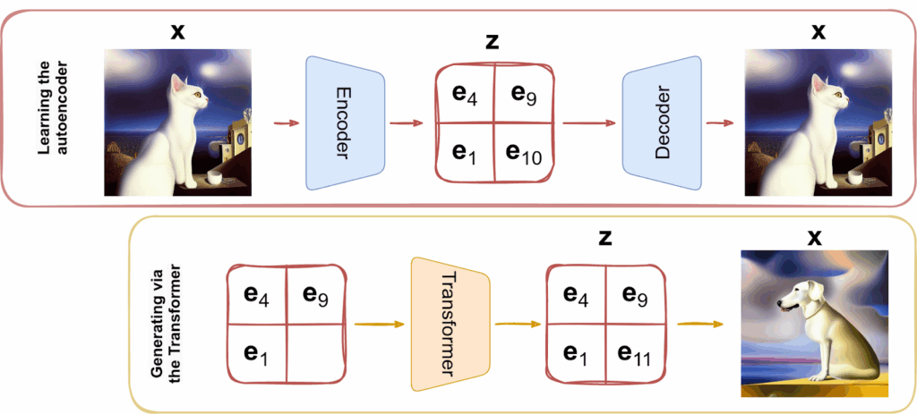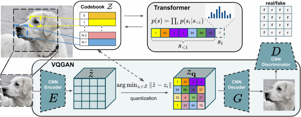 So in this approach, an image becomes a sequence of codebook vectors, and the Transformer does what it does best: learns to generate sequences.