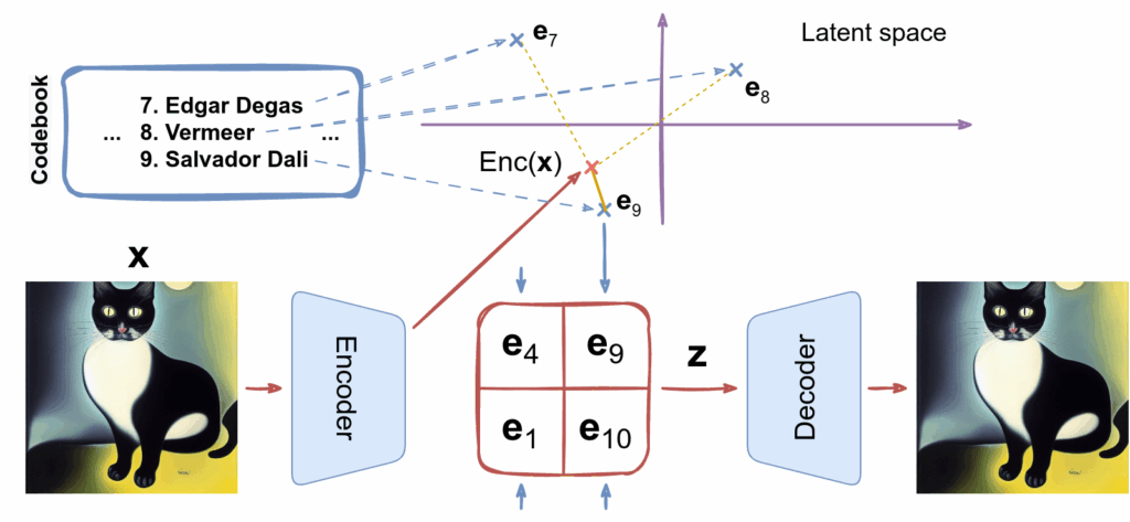 Last time, we discussed one of the models that have made modern generative AI possible: variational autoencoders (VAE). We reviewed the structure and basic assumptions of a VAE, and by now we understand how a VAE makes the latent space more regular by using distributions instead of single points. However, the variations of VAE most often used in modern generative models are a little different: they use discrete latent spaces with a fixed vocabulary of vectors. Let’s see what that means and how it can help generation!