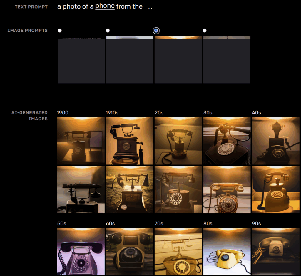 DALL-E seemed to have a rather deep understanding of our reality that it could put into pictures. For example, the next illustration shows several image prompts and a text prompt that asks DALL-E to show how telephones looked at different stages of their development: