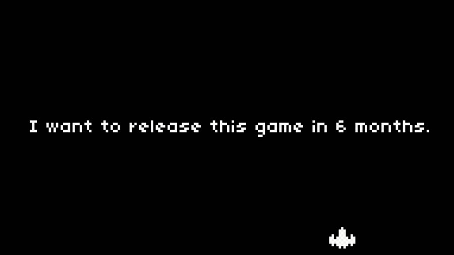 Игра начинается с того, что вы управляете космическим кораблём и стреляете по словам “Я хочу выпустить игру за шесть месяцев”, которые продолжают появляться на экране.
