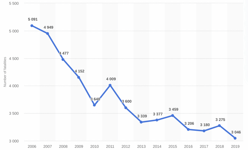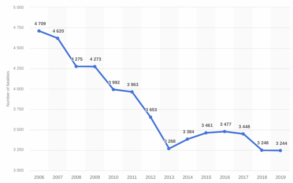 In fact, significant progress has been achieved in reducing these deaths and injuries over the last years. Here are the statistics of road traffic fatalities in Germany over the last few years: