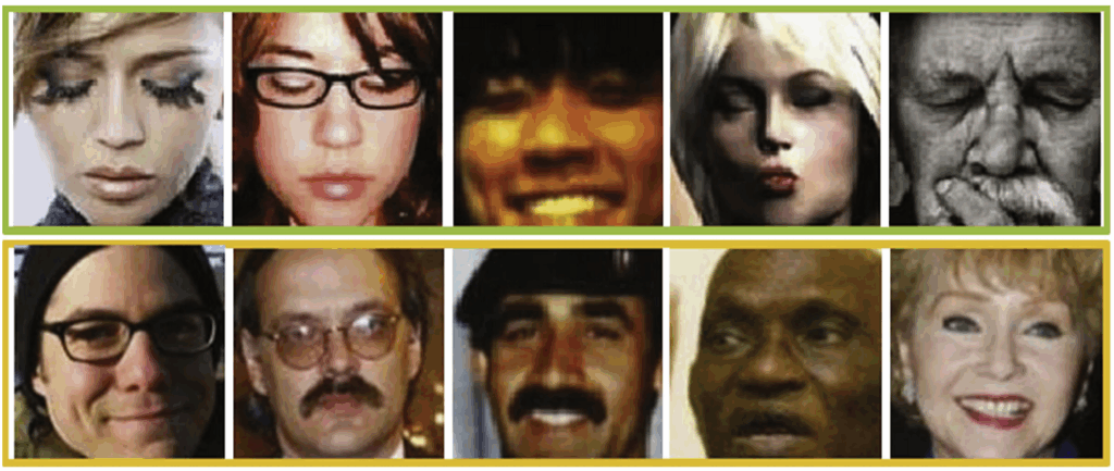 The most telling sign would be, of course, detecting that the driver’s eyes are closing. There is an entire field of study devoted to detecting closed eyes and blinking (blinks get longer and more often when you’re drowsy). In 2014, Song et al. presented the now-standard Closed Eyes in the Wild (CEW) dataset, modeled after the classical Labeled Faces in the Wild (LFW) dataset but with eyes closed; here is a sample of CEW (top row) and LFW (bottom row):