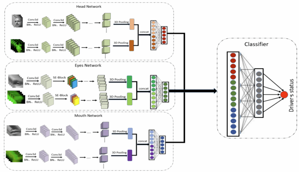 We don’t have to restrict ourselves only to the eyes, of course. The entire facial expression can provide important clues (did you yawn while reading this?). For example, Shen et al. (2020) recently proposed a multi-featured pipeline that has separate convolutional processing streams for the driver’s head, eyes, and mouth: