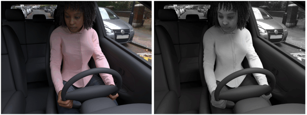 Third, you are most likely to fall asleep when you’re driving at night, and night driving means your face is probably illuminated very poorly. You can use NIR (near-infrared) or ToF NIR (time-of-flight near-infrared) cameras to “see in the dark”. But pupils (well, retinas) act differently in the NIR modality, and this effect can be different across different ethnicities. This kind of different camera modalities and challenging lighting is, again, something that is relatively easy to achieve in synthetic datasets but hard to find in real ones. For example, available NIR datasets such as NVGaze or MRL Eye Dataset are done for AR/VR, not from an in-car camera perspective.