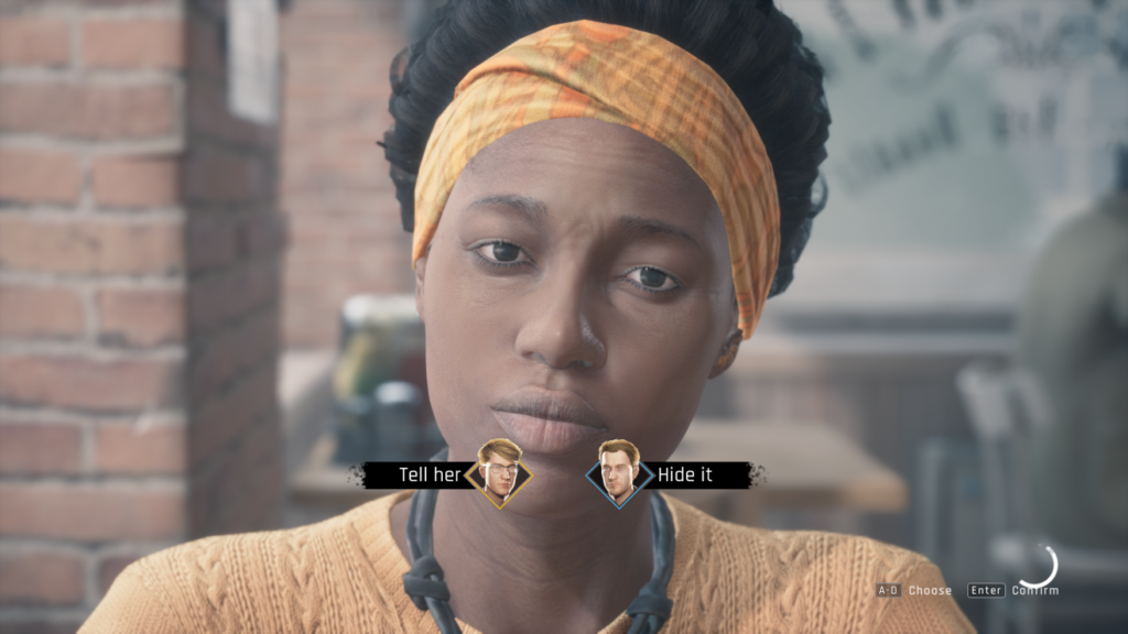 Twin Mirror — это линейное приключение с некоторыми развилками и разными концовками, с детективной историей, разворачивающейся в американской глубинке. По сюжету, диалогам и вайбу больше всего она мне напомнила Heavy Rain, но тут есть и совсем другие элементы. Например, я хотел было написать, что здесь стащили одновременно и mind palace, и воображаемого друга из серии Frogwares про Шерлока Холмса, но оказалось, что Twin Mirror вышла раньше, чем Sherlock Holmes Chapter One (а чертоги разума были, конечно, и у Конан Дойля, и в экранизациях).